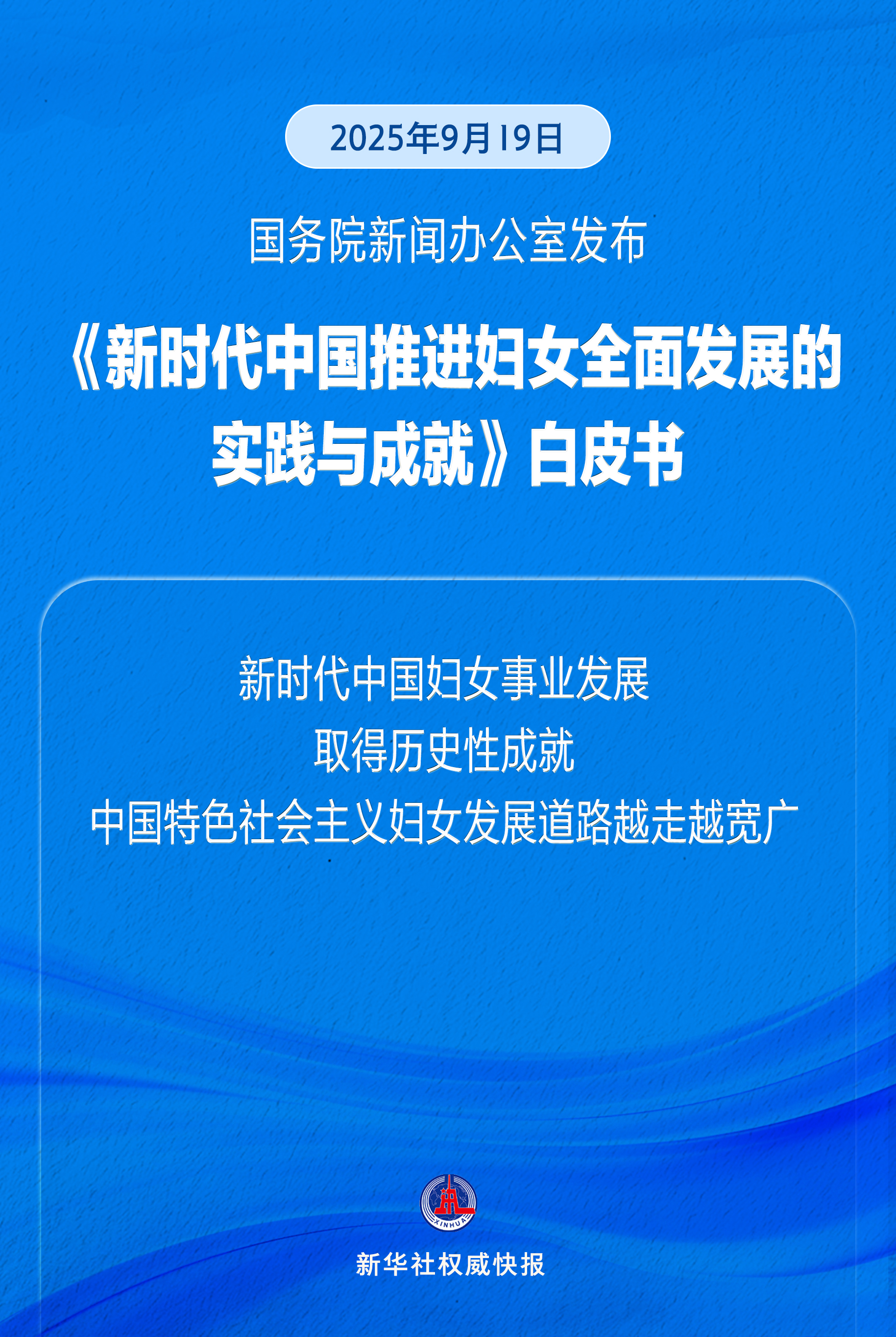 国务院新闻办公室9月19日发布《新时代中国推进妇女全面发展的实践与成就》白皮书。
