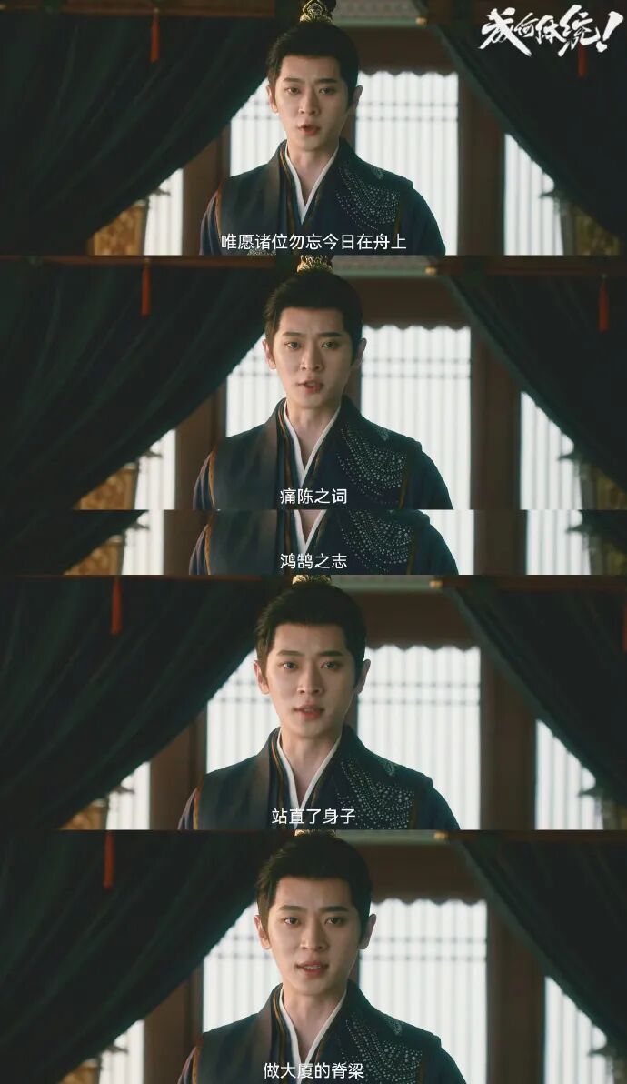 而当庾晚音和夏侯澹登上湖船,会见大夏国怀才不遇的学子们,那些曾经作为端王计划的一环被轻轻揭过的名字、停留在剧本情节褶皱里的纸片人,此刻满怀热血和抱负站在主角面前,他们的形象,被中国文人“为往圣继绝学,为万世开太平”的豪情风骨撑起。作为现代人的主角对他们的承诺和襄助,是我们骨子里对那“河清海晏、时和岁丰”的信念的共振和渴望,也是一个关心时代的剧集借故事回应一个当下社会所热切期盼的理想。